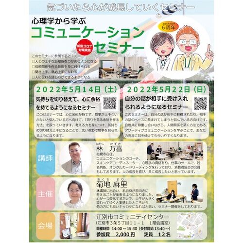 みなさんこんにちは。 コミュニケーション能力アップをサポート、 林万喜セミナー主催の、菊地麻里(きくちまり)です。 私はセミナーのお仕事の1つとして、チラシ作りの担当もしております! チラシ作りをする上で、最近はこくちーずプロのQRコードを表示…